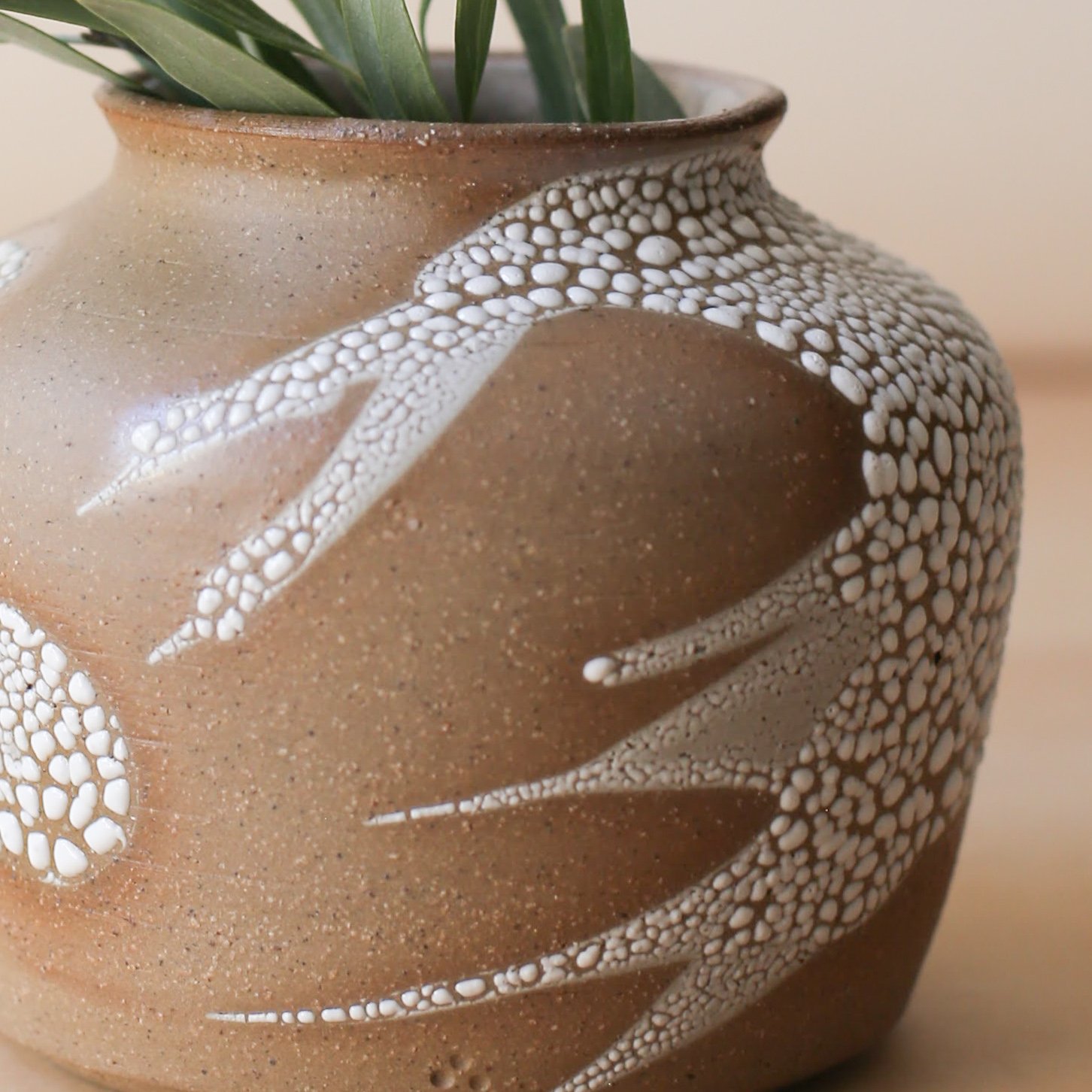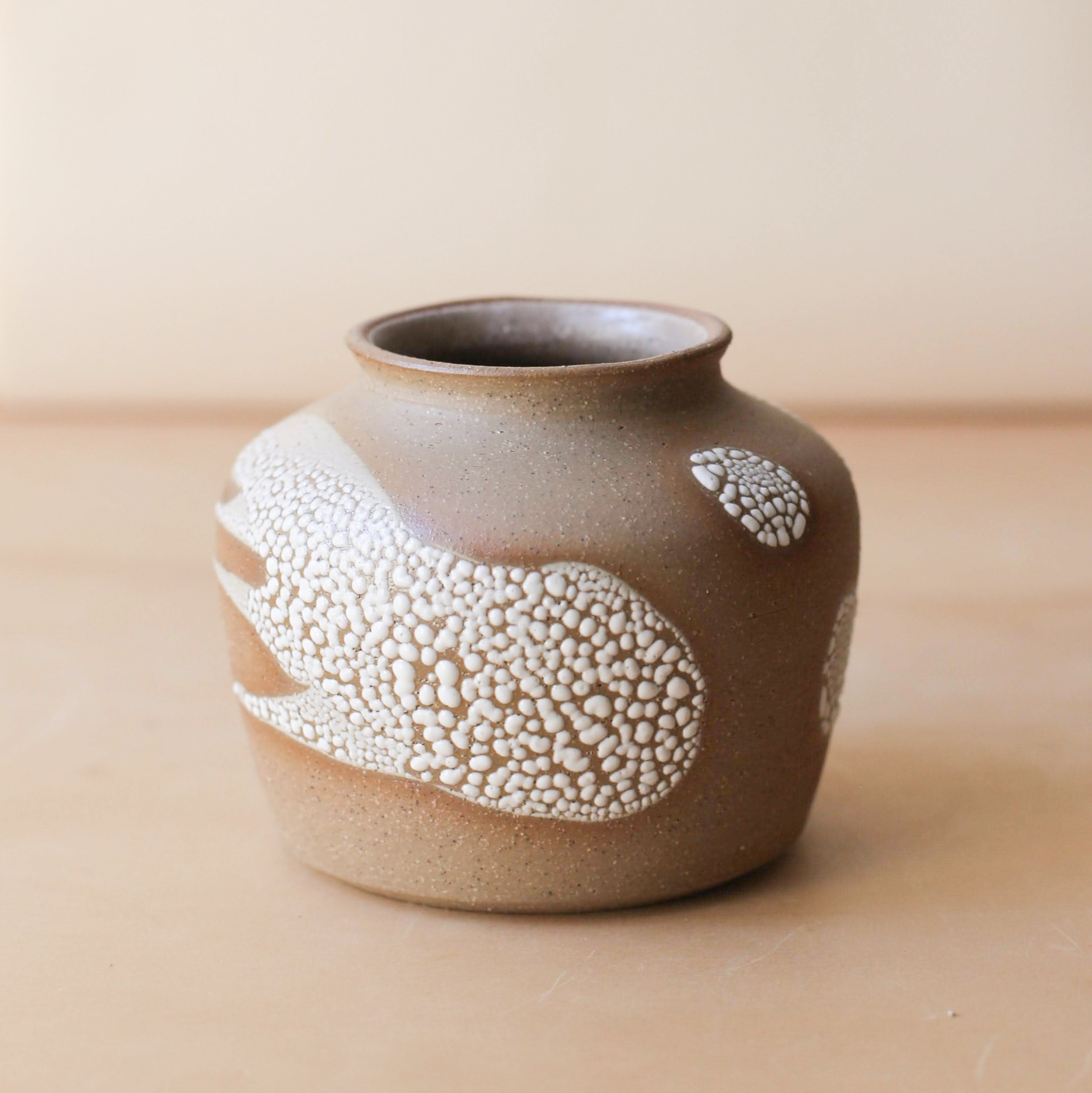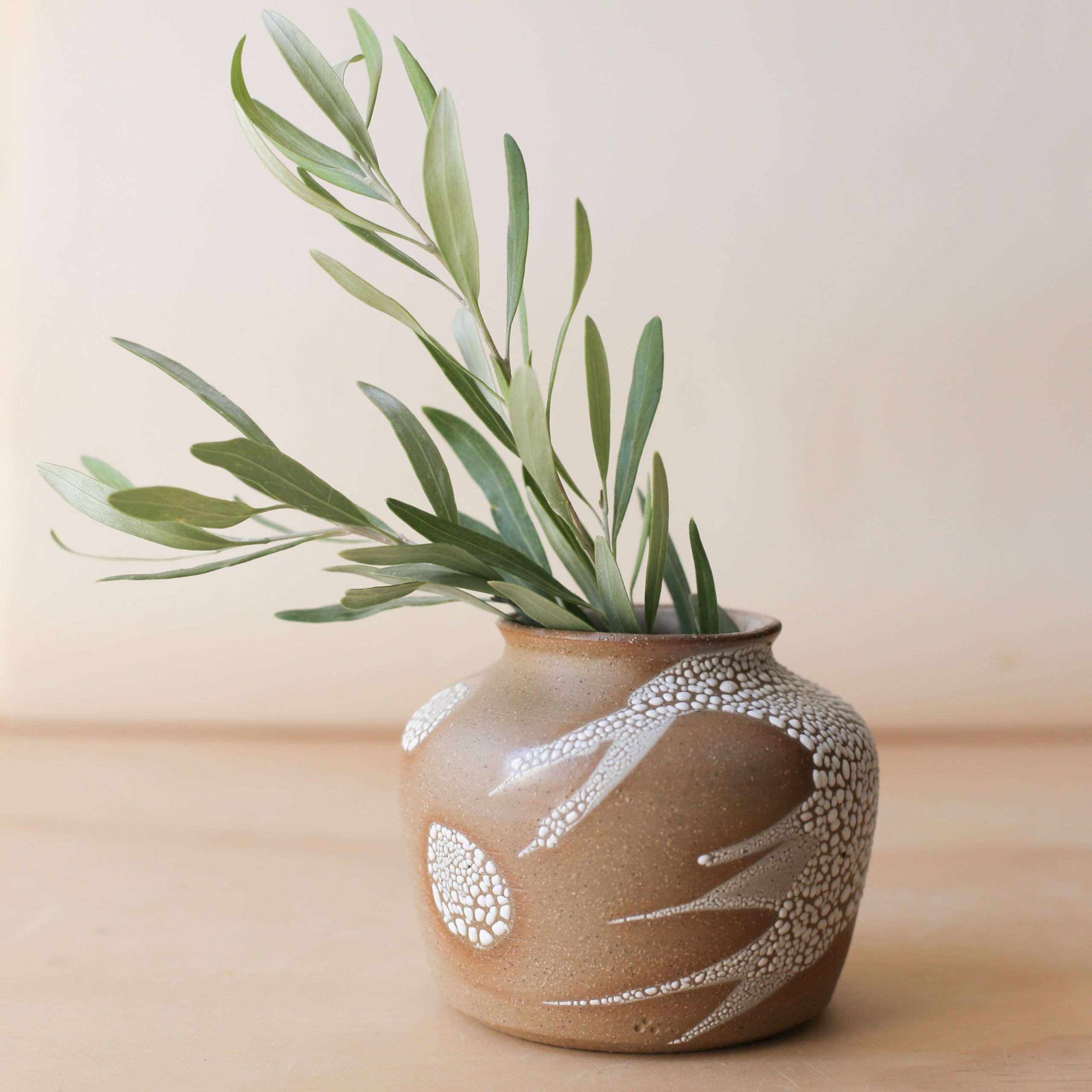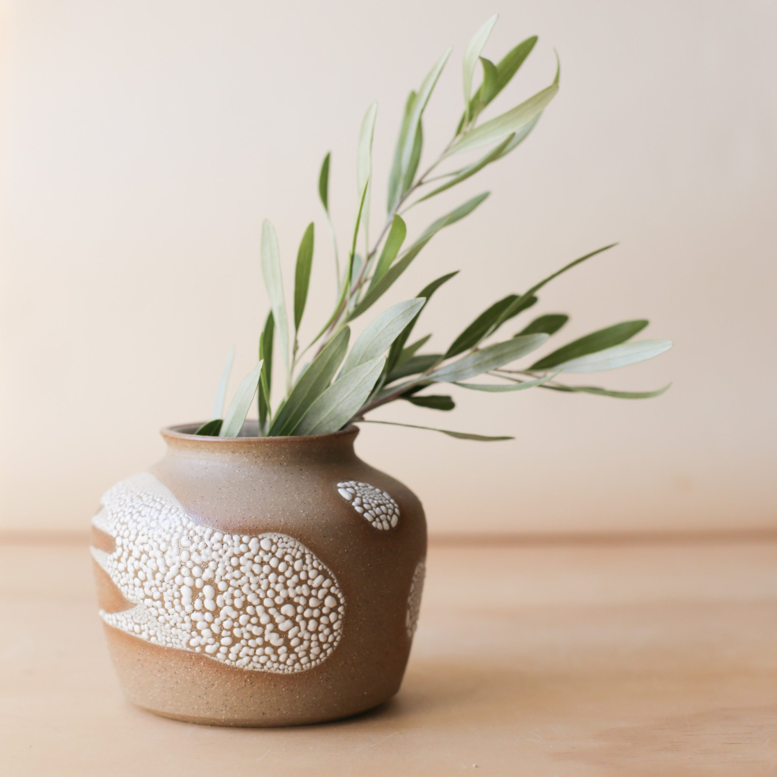 Beautiful handmade ceramic vase, modern neutral aesthetic. Earthy brown clay with a raised crackle glaze.