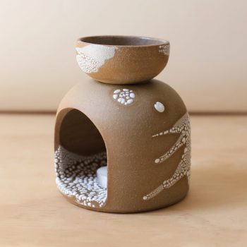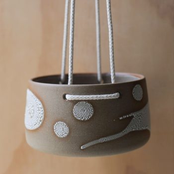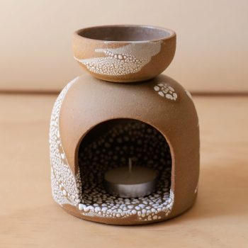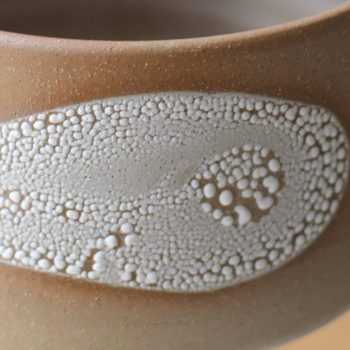 It’s made from a warm brown clay and has splashes of a bobbly white glaze on the exterior that for some reason feels uniquely Australian to me. Other parts of the exterior are left unglazed so that you can enjoy the loveliness of this beautiful clay. The gorgeous bits of toastiness around the edges of the glaze are particularly nice. The interior is glazed in a clear glaze.